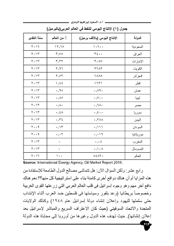 )ليمربلاب(يبرعلا ملاعلا يف طفنلل يمويلا جاتنلإا )1( لودج