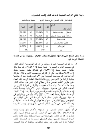 رشنلا فادهأ نٌب ىلولأا ةبترملا ًف تباج ضرملاب ةٌحصلا ةٌعوتلا نأ 1 .