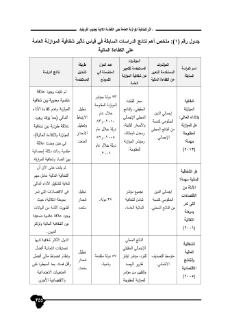 ةماعلا ةنزاوملا ةيفافش ريثأت سايق يف ةقباسلا تاساردلا جئاتن مهأ صخمم